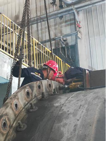 檢修期間,技術人員全程現場駐點指導與監督。從舊端蓋的拆卸、接觸面的精細打磨處理,到新端蓋的精準起吊定位以及最終的密封性能測試,每一道工序均嚴格遵循既定工藝標準和質量要求。面對端蓋重量大、安裝空間受限等技術難題,檢修團隊迎難而上,憑借專業的吊裝設備和精湛的操作技能,平穩高效地完成了舊端蓋拆除與新端蓋安裝就位。經過細致調整連接螺栓的緊固力矩,確保了端蓋與筒體之間達到卓越的密封效果。安全監督人員全程旁站監護,對吊裝作業、動火作業、臨時用電等關鍵環節實施嚴格安全管控,有力保障了整個施工過程的安全零事故。通過全體參檢人員的協同攻堅,端蓋更換任務較原計劃提前17小時圓滿完成。